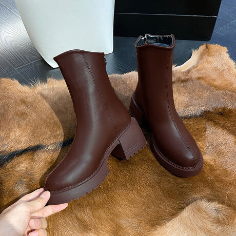 ショートブーツ 太ヒール レディース
