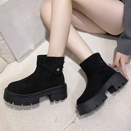 ショートブーツ 厚底 バックジップ 韓国