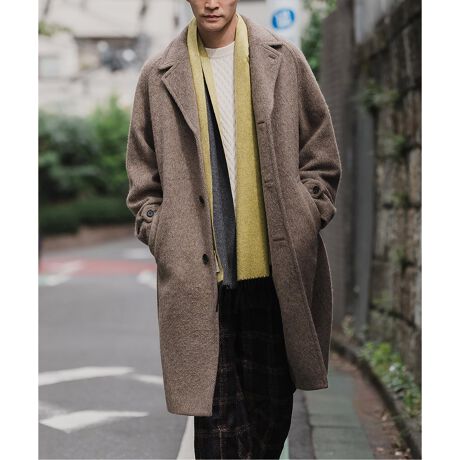 エコウールにシャギーをかけたREWOOL SHAGGY 素材を使用したオーバーコート。