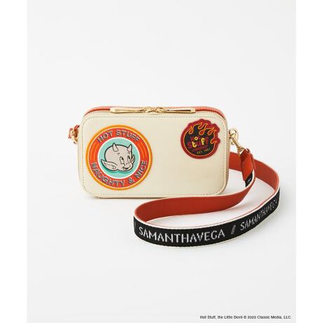 ◇SAMANTHAVEGA(サマンサベガ)の【キャスパーコレクション】ホットスタッフショルダーバッグサマンサベガのキャスパーコレクションから「ホットスタッフ」ショルダーバッグが登場!ワッペンデザインとオレンジ×オフホワイトのバイカラーはまるで海外のアメリカン・コミックのようなイメージに。2層式でポケットも付いているのでコンパクトな見た目ながら収納力も◎ロゴ入りショルダーは両面で使い分けて頂けます。