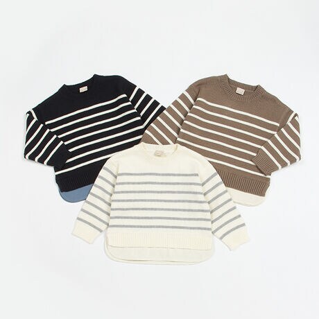裾に別布をドッキングしたコーデ風のボーダーニットです。重ね着しなくてもおしゃれなトップススタイルが決まる優れもの。程よくゆとりのあるシルエットなので、一枚着でもアウターを羽織ってもすっきり着用できます。ご自宅の洗濯機で洗えるマシンウォッシャブル仕様です。【透け感】透けない【生地の厚さ】普通【伸縮性】あり【裏地】なし【ポケット】なし