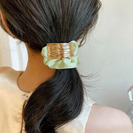 シンプルながらもきちんと感や上品な雰囲気を演出するゴールドプレート付きヘアゴム