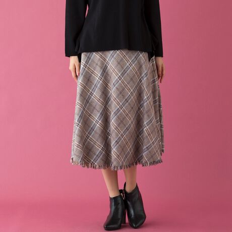インポートファブリックならではの存在感あるチェックを使用したフレアスカート。