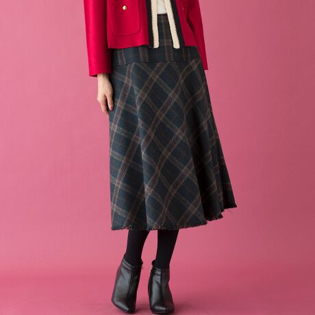 インポートファブリックならではの存在感あるチェックを使用したフレアスカート。