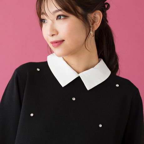 白襟ビジューニットプルオーバー