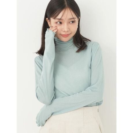 メローフリルの縁取りが甘さをプラスするシアータートルネックプルオーバー。