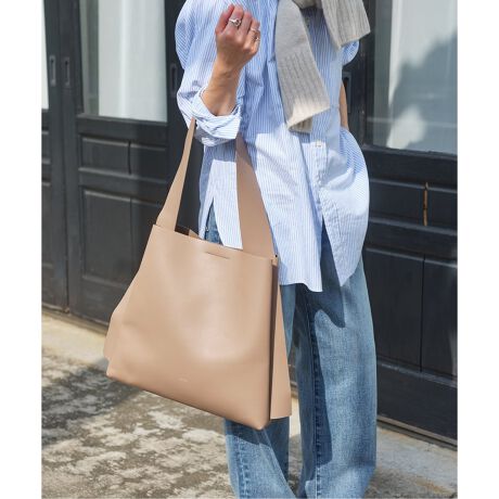ミニマムデザインで幅広いスタイルに活躍するトートバッグ。
