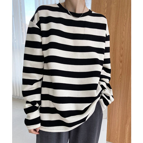 着るだけで爽やかな大人の女性らしさを印象づけるロングスリーブボーダートップス
