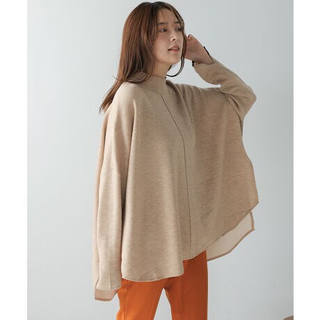 配色のリバーシブルニット編地のポンチョ風プルオーバー。