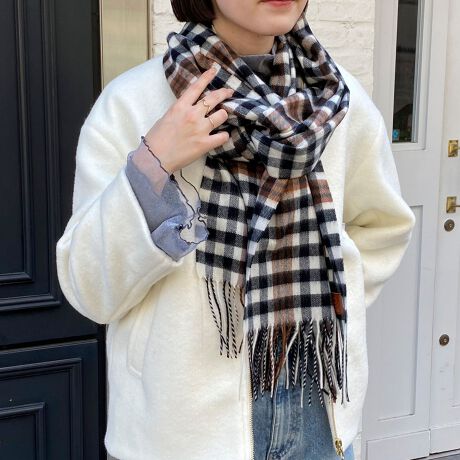 ・カシミヤらしい自然な光沢と、大柄チェックがモダンな印象に導いてくれるストールです