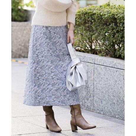 表面感のあるジャガードで仕立てたストレートスカート。大きな花柄が浮かび上がるようなディテールが、ダークトーンになりがちが季節の着こなしに映える仕上がり。ウエスト後ろはファスナー&ゴム仕様でラクなはき心地です。縦ラインをスタイリッシュに見せるストレートラインを演出し、後ろはセンターベンツを入れているので歩きやすくなっています。スウェットを合わせてカジュアルダウンも、シンプルなトップスを合わせてフェミニンな印象にも着用いただけます。