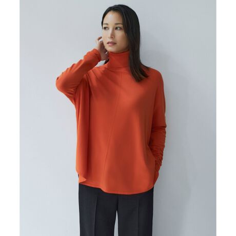 ■デザイン昨年ご好評頂いたヴィスコースワイドハイネックプルオーバーに今年らしいカラーが登場。オーバーシルエットな身幅と細身の袖でメリハリをつけた『Tシャツ以上セーター未満』の着心地で秋冬に活躍間違いなしのタートルネックデザインに仕上げました。スムージーで滑らかな質感の衿は心地よく、ストレスフリーに着ていただけます。一枚着としてはもちろん、ジャケットインにもおすすめの一枚です。