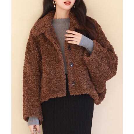 もこもこのボアがあったか可愛い真冬本番アウター。裏地付きなので、風を通しにくくゆったりしたドルマンスリーブで中にも着込めます。
