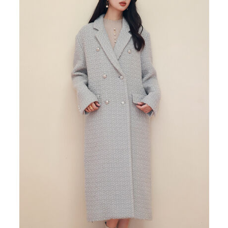 ラメー入りツイードミモレ丈コート