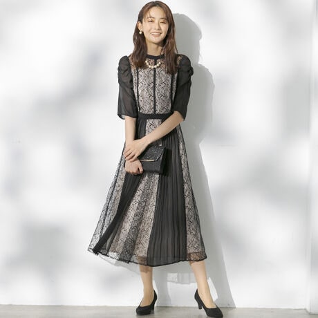 フォーマルシーンが華やかになる!レースプリーツドレス