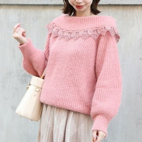 レース使いオフショル風ニット【洗える】
