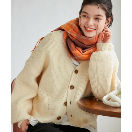 【ルーズに着こなして旬見え。暖かさも備えた秋のカーディガン。】