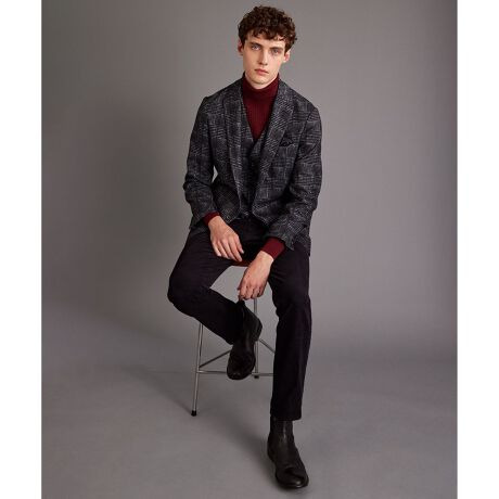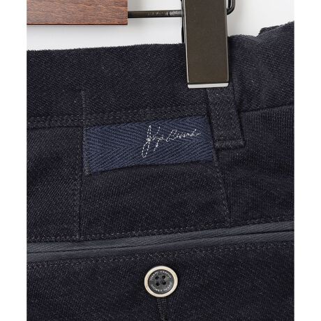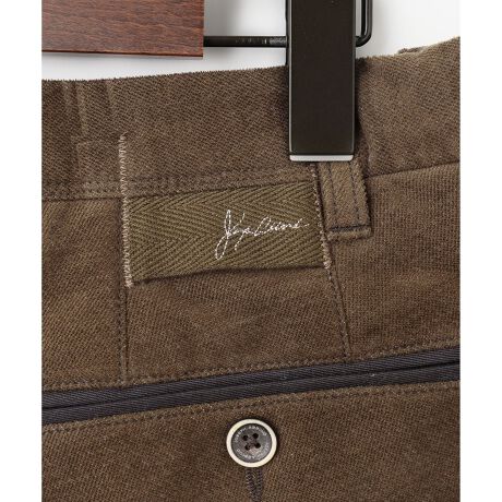 ■素材JOSEPH ABBOUD得意のストレッチ性の高いオリジナル素材。温かみのある生地に裏起毛加工をし、カルゼ組織で表現したオリジナル素材。コットンにはオーガニックコットンを使用。JOSEPH ABBOUD永遠のテーマ「自然との共存」・「天然素材志向」にこだわり、環境へ配慮しました。通常の暖かパンツとは違い、ヨコ糸に蓄熱性のある機能糸を織り込み、更に裏側を深起毛することでとても暖かく防寒性に優れています。肌触りは柔らかく、裏地を付けていない為、しっかりとしたシルエットを出せるのがポイント。2WAYストレッチ素材にカジュアル仕様のウエストムーブを搭載したフルストレッチ仕様。