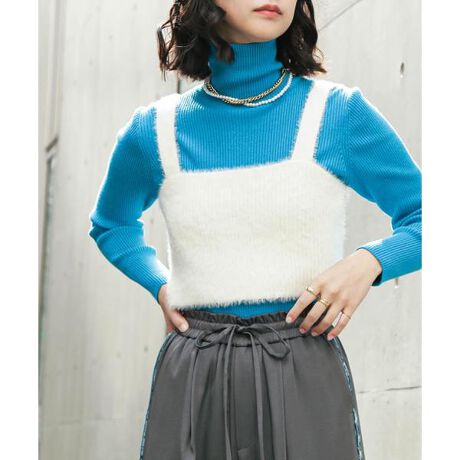 1枚持っていると着回しできるシャギーニットビスチェ。毛足の長いシャギーニット素材は、しっかり膨らみのある糸を使っているため、だれることなく形をキープしてくれます。薄手のシャツやニットとレイヤードするだけでトレンド感を演出。ベア型ビスチェのシンプルな形と色味なので、中にカラーや柄トップスを合わせるのもお勧め。短めの丈なので、ハイウエストのボトムスと合わせるだけでスタイルアップが叶います。※モデルの着用画像の場合、光の当たり具合により、実際の色味と異なって見えることがございます。色味は、商品単体の画像をご参照ください。