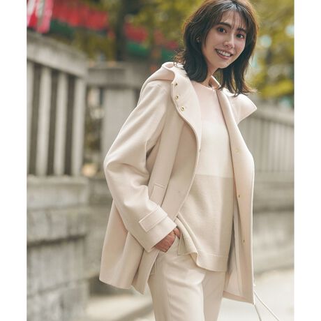 程よいオフボディシルエットのフード付きコートです。襟元まであるさりげないスナップボタンが、きれいめにも着こなせる上品な印象で、防寒対策にもなるよに仕上げました。(スナップボタンのお色はコートのカラーがライトグレー&ベージュに対してはゴールド、ブラックに対してはシルバーになります)またミドル丈なので、パンツはもちろんスカートやワンピースなどアウター選びを迷ってしまうアイテムとも好相性。おでかけの際にもサッと着用でき動きやすいので、日常使いにも最適。気負わず羽織れるので、この秋冬に1枚あると便利なアウターです。カラー展開は、柔らかく優しい印象のベージュ(#033)、クールさと可愛らしさを兼ね備えたライトグレー(#003)、どんなコーデも締まるブラック(#005)の3色です。