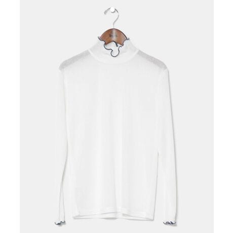 首元や袖口から覗く、ふちのメローステッチ(メローロック)が女性らしさを演出します。
