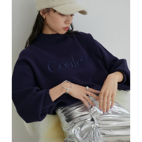同色のロゴ刺繍がさり気ないアクセントのニットです。