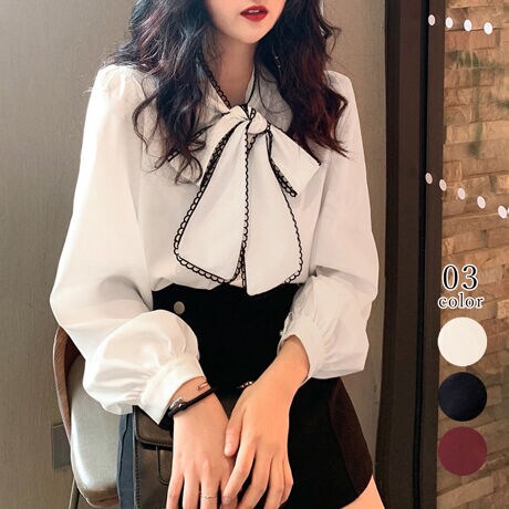 ボウタイブラウス 韓国リボンブラウス長袖