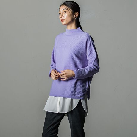 この程よい着丈、程よいゆとりがラエフで人気のハイネックニット。