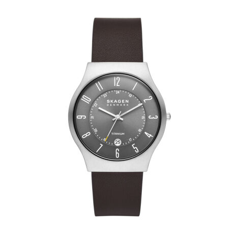 グレーのサンレイダイヤルに、エスプレッソのレザーストラップを組み合わせました。