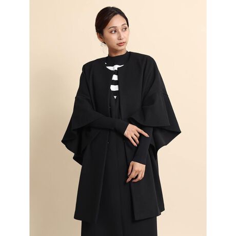 袖に上品なフレアをデザインしたセミロング丈のコートが新作登場。