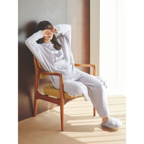 無垢な表情をしたシュナウザーの愛らしさを、ふんわり軽い'ベビモコ'素材で表現したルームウェアシリーズです。プルオーバーとロゴ入りロングパンツをセットアップで楽しめるセットアイテムとなっております。HOMMEでリンクコーディネートが楽しめます。ゆったりしたベーシックなシルエットは、いつものおうち時間にリラックスして着られます。同シリーズでワンピースもご用意しています。