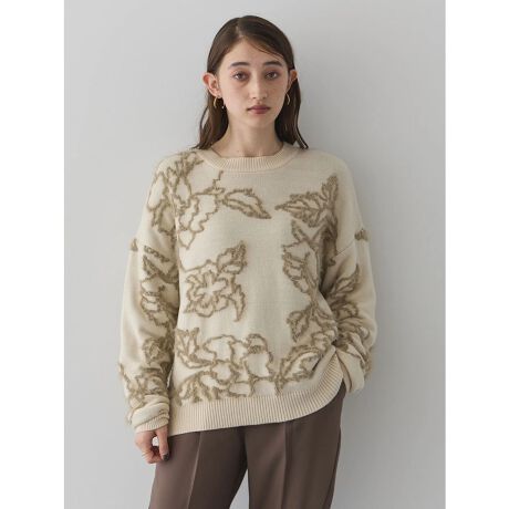 フェザーフラワー柄ニット