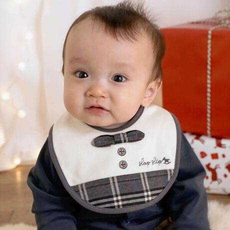 【お揃い】チェック柄蝶ネクタイ風スタイベビー