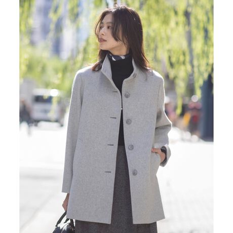 オンオフ兼用!インナーを選ばず着回せる、滑らかな風合いのスタンドカラーコート