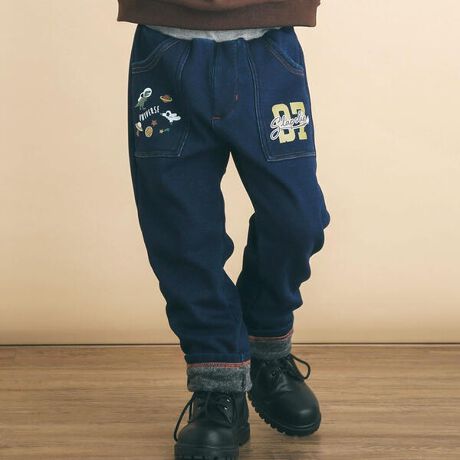 宇宙モチーフプリント裏シャギーデニムパンツ(80~130cm)