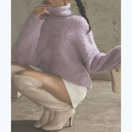 もちっと肉厚でありながら軽い着心地で柔らかく、ブークレ特有のモコモコとした素材感も楽しめる冬らしい一枚。