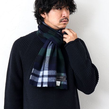 _保湿性に優れたウールとカシミヤ混のチェックマフラー_