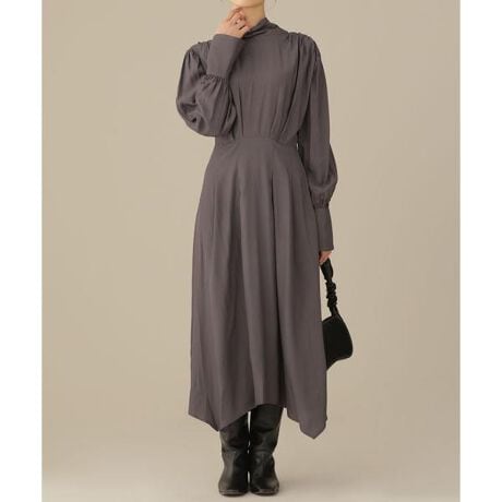 casa fline/ハイネックタックイレヘムドレス