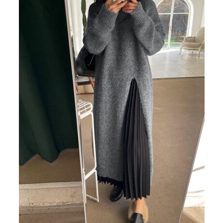ニットワンピース 秋冬 ディープスリット