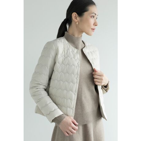 オフホワイトとベージュの2つのカラーオプションの短丈軽量ダウンジャケットを、様々なシーンで魅力的なスタイルにアレンジしてみてください。