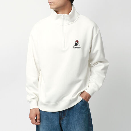 スタンドカラーのハーフジップ仕様は着脱しやすく、首元をスッキリと見せながら知的で落ち着いた印象を与えます。ボタンシャツとの重ね着も◎。