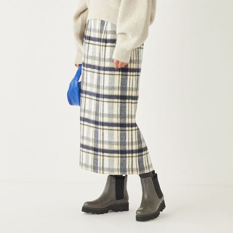 配色が印象的なチェックが特徴で、重くなりがちな秋冬のスタイリングのポイントになるアイテムです。