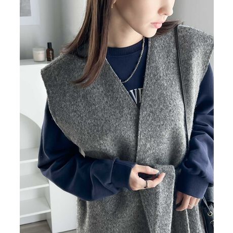 羽織るだけでこなれ感。2wayフェイクリングウール ロングジレ