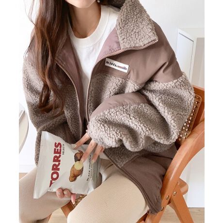 《Javaジャバコラボ》異素材の組み合わせがお洒落見え。切替ボアブルゾン