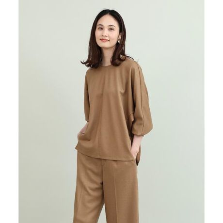 ゆったりと女性らしいフォルムのドルマンスリーブブラウス。イージーなニュアンスを残しつつも、開き過ぎない程よいラウンドネック、袖口のカフス仕様で品のある雰囲気に。フロントのみボトムにインするスタイルや、同シリーズのボトムとのセットアップコーデもおすすめです。世界的ウールテキスタイルの産地として有名な尾州で生産したウールジャージ素材を使用。ウールとポリエステルのミックス素材に縮絨を施し、ハリコシを出したウォーム感のある素材です。バーズアイ組織による控えめな柄感で表面に表情を付けました。伸縮性もあり、快適な着心地でありながら、きちんとしたシーンにも着用できます。・水洗い可・裏地無し・後ろファスナーあり同素材のパンツ品番:7034161812■サンプル撮影商品■こちらの商品はサンプルでの撮影となっております。実際の商品とは、サイズや色味、素材、デザイン等の仕様が若干変更になる場合がございます。
