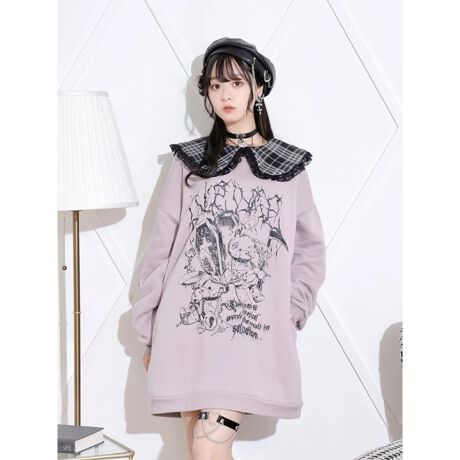 裏起毛チェック襟ゴシックうさぎチュニック