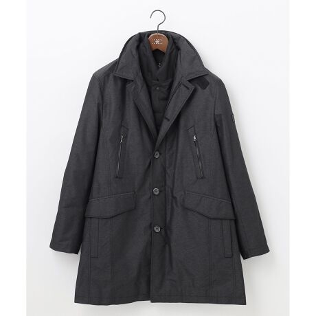 ■素材JOSEPH ABBOUD独自の3WAY DOWNを搭載した新感覚なダウンコート。形状記憶性のある特殊なインターレースポリエステル糸(糸を巻き取りする際に進行方向と垂直方向より高圧の空気を周期的に吹きつけることにより、糸同士を交絡させて周期的に節のように細く固めた糸。)を先染めシャンブレーで表現したJOSEPH ABBOUDオリジナル素材。軽量性、撥水性、防風性に優れ、3通りの着回しを楽しめるのが特徴。