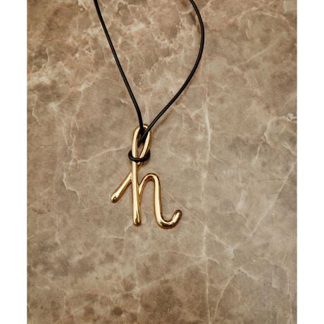カジュアルに使える革紐は取り外し可能で、チャームとして革紐を外してアレンジが可能なゴールドアクセサリー。