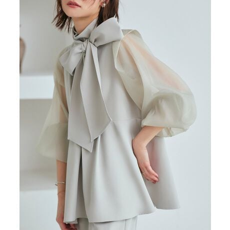 ・トップス袖部分:ほんのりと透け感のある、上品な雰囲気のオーガンジー素材。