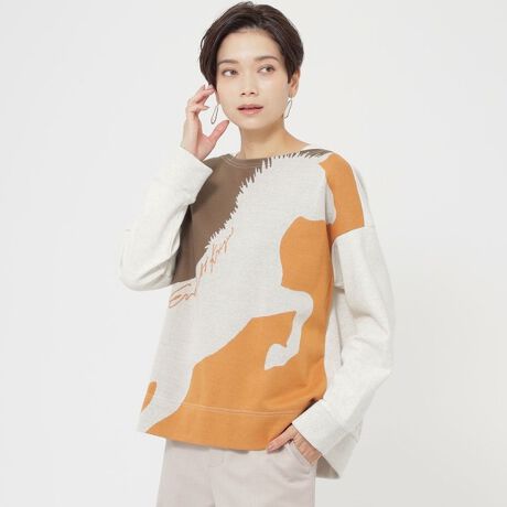 ポップな配色とモウコノウマのシルエットがマッチしたスウェットライクなプルオーバー。